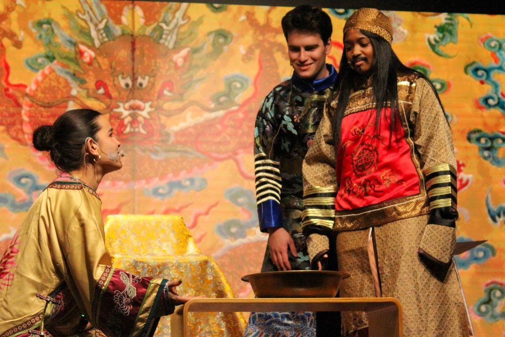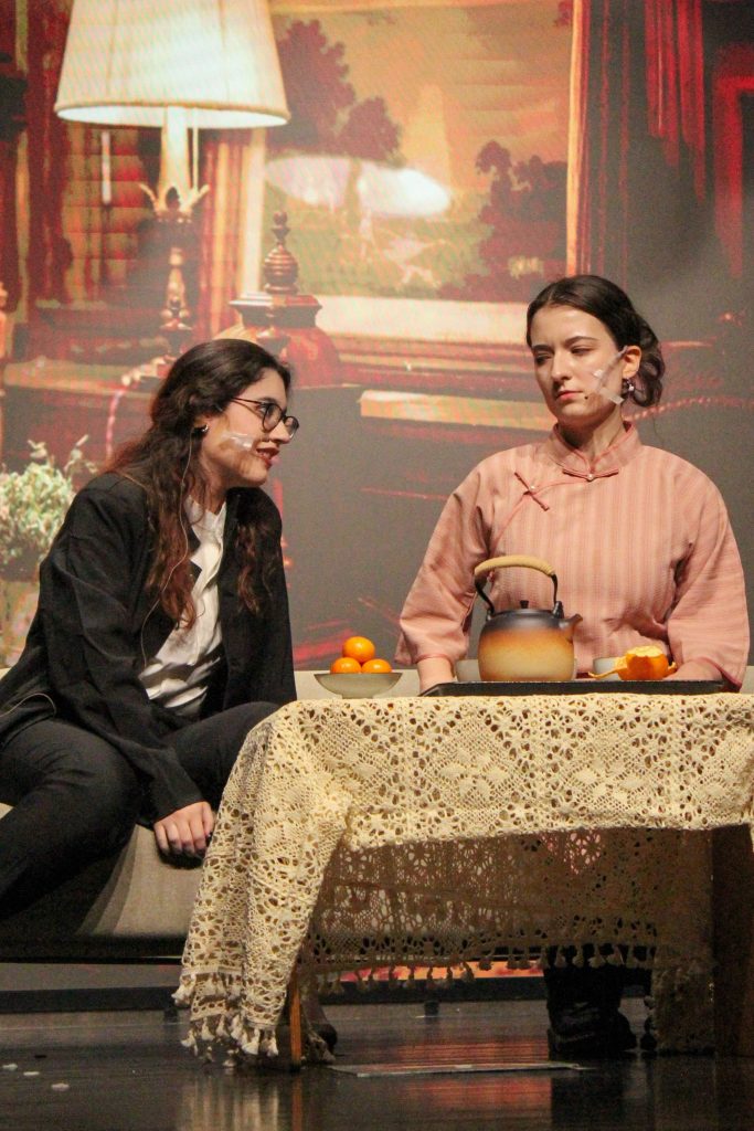 Not to be out done, our advanced learners Sophia Paske and Solana Torres, with the help of Maddie Brown, displayed the tension between gender, marriage, and love in Ding Xilin’s (1893-1974) “Flushed with Wine,” in celebration of the 100th anniversary of the play’s creation. Specifically, the English subtitles used during this performance were made possible through the generous permission of John Weinstein and Carsey Yee, whose English translation of the play was first published in the MCLC Resource Center. This beautiful all-female student rendition also brought honor to the “amateur drama” tradition.