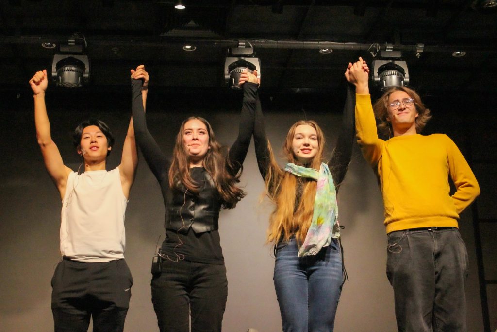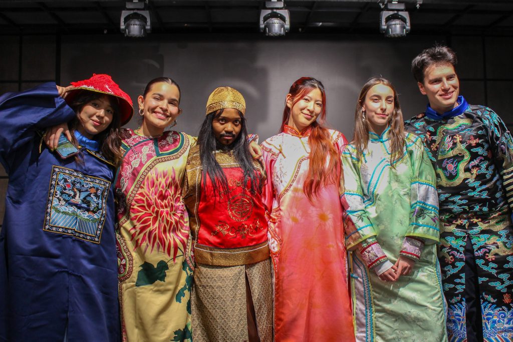 The opening was followed by an original play entitled “Love is Messy.” This play combined two scripts written by Aeryn Bernard, Maciej Matuszczak and Lucie Pike, as well as Nigel Andati and Mohammad Shazil Imran, as part of Zhou Xiayun’s Chinese 201A class final project. It follows our beloved textbook characters, Bai Ying’ai, Li You, Wang Peng, and Gao Wenzhong, as they begin their journey beyond university. Brought to life by Maciej Matuszczak, Lucie Pike, Gavin Huang, and Hana Okimoto, the cast embodied how messy love can truly be. In the end, they captured not only the audiences’ hearts but their laughs as well.