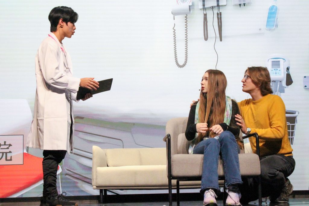 Our native Chinese speakers also were given the chance to show their acting prowess through the original work of the DKU Curtain Call Drama Club. “Will You Be 51 Forever” explored the connection between artificial life and human emotions through the turmoil of two sisters watching their mother near the end of her life. Though only an excerpt, actresses Ren Kaiyun, Xiong Yueting, and Wang Zihan, tugged at the heartstrings of those in the audience and drew everyone in, no matter their language level. The work truly became a testament not only to the effort of the performers but of the entire team including Liu Yihan (Director), Jiang Wenxi (Producer), Jiang Haodi (Scriptwriter), Zhang Haoxuan (Lighting), Liu Xinyi (Props) and Xu Shaorong (Sound).